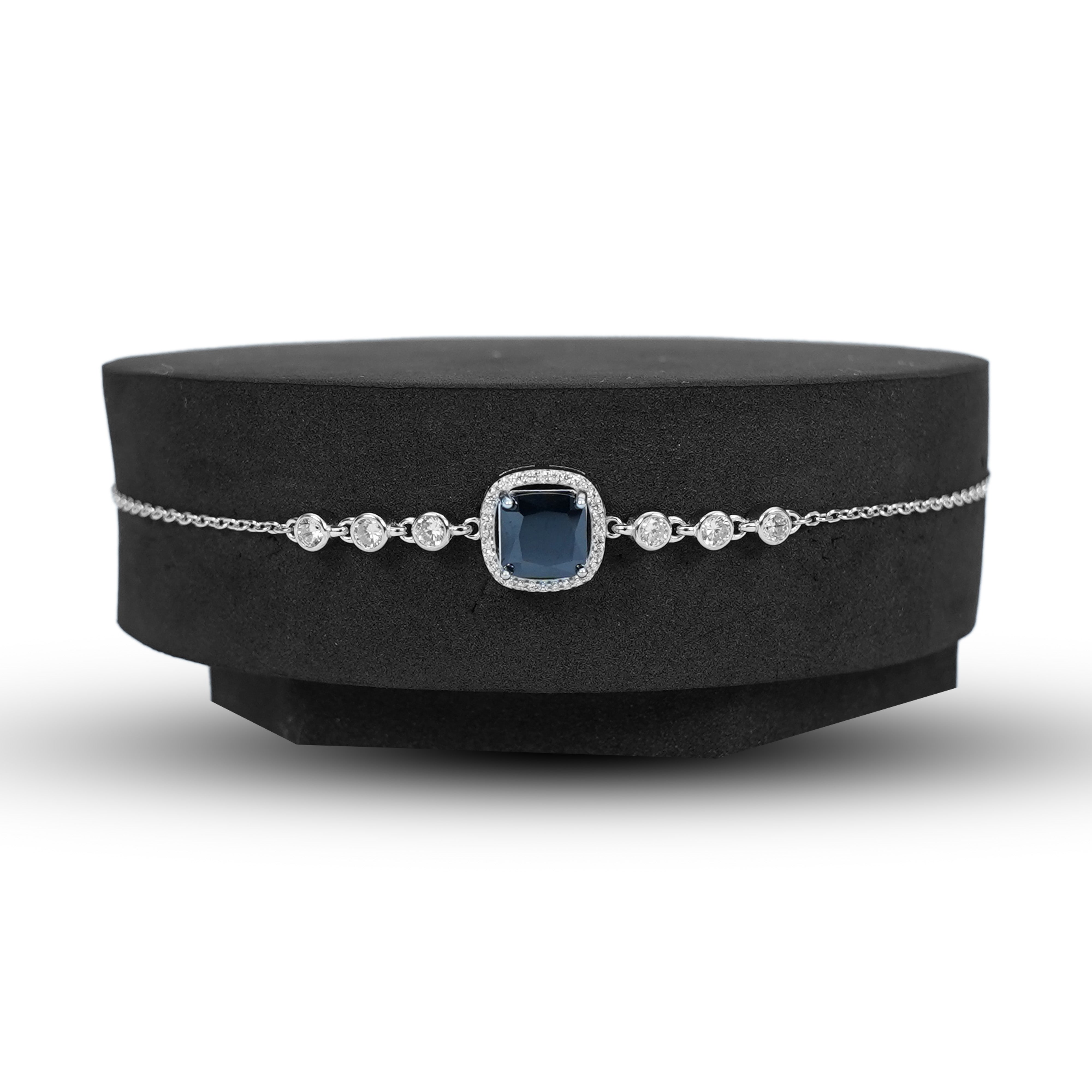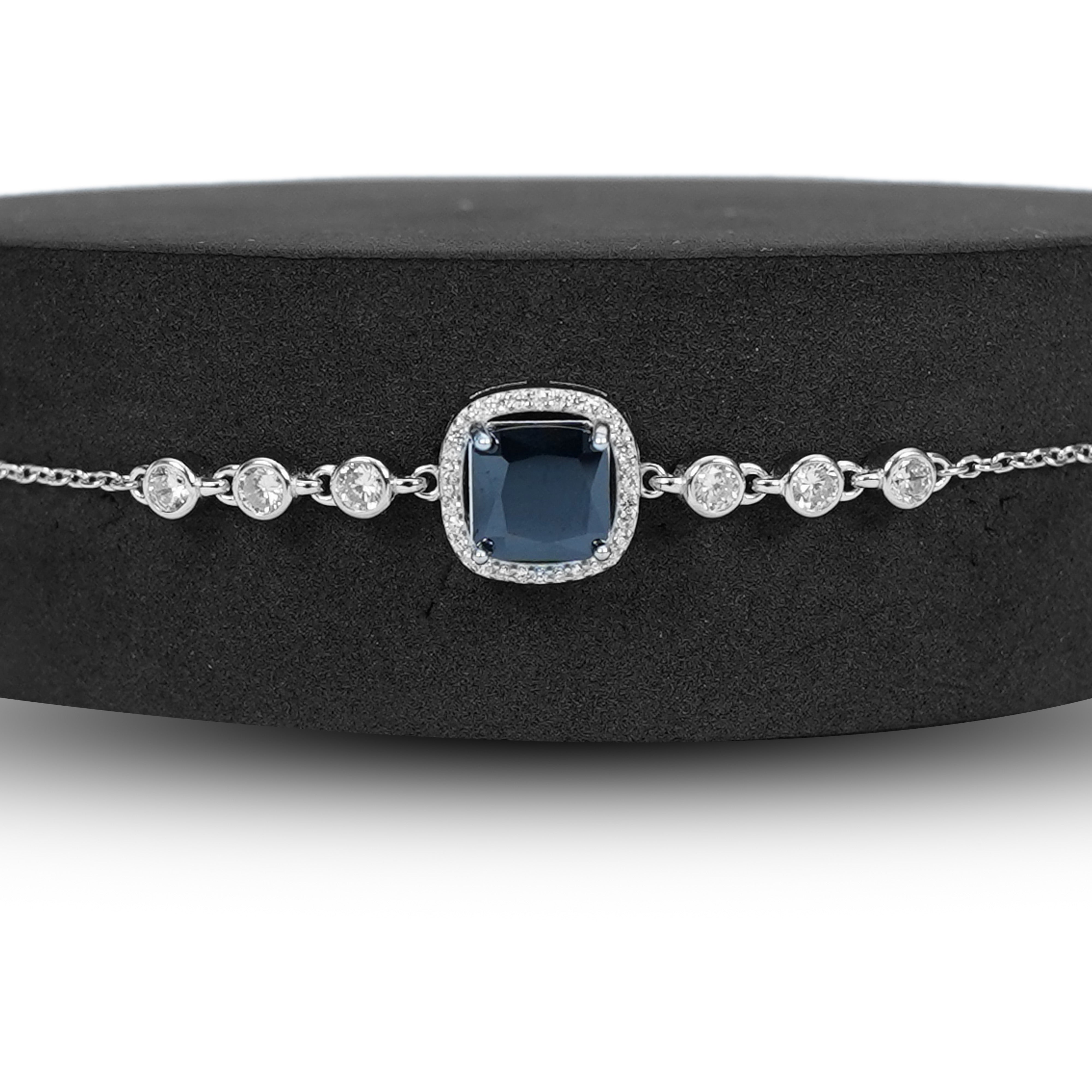 Sterling 925 Bracelet with Black Zircon Stone. 8 inches + extension in length.