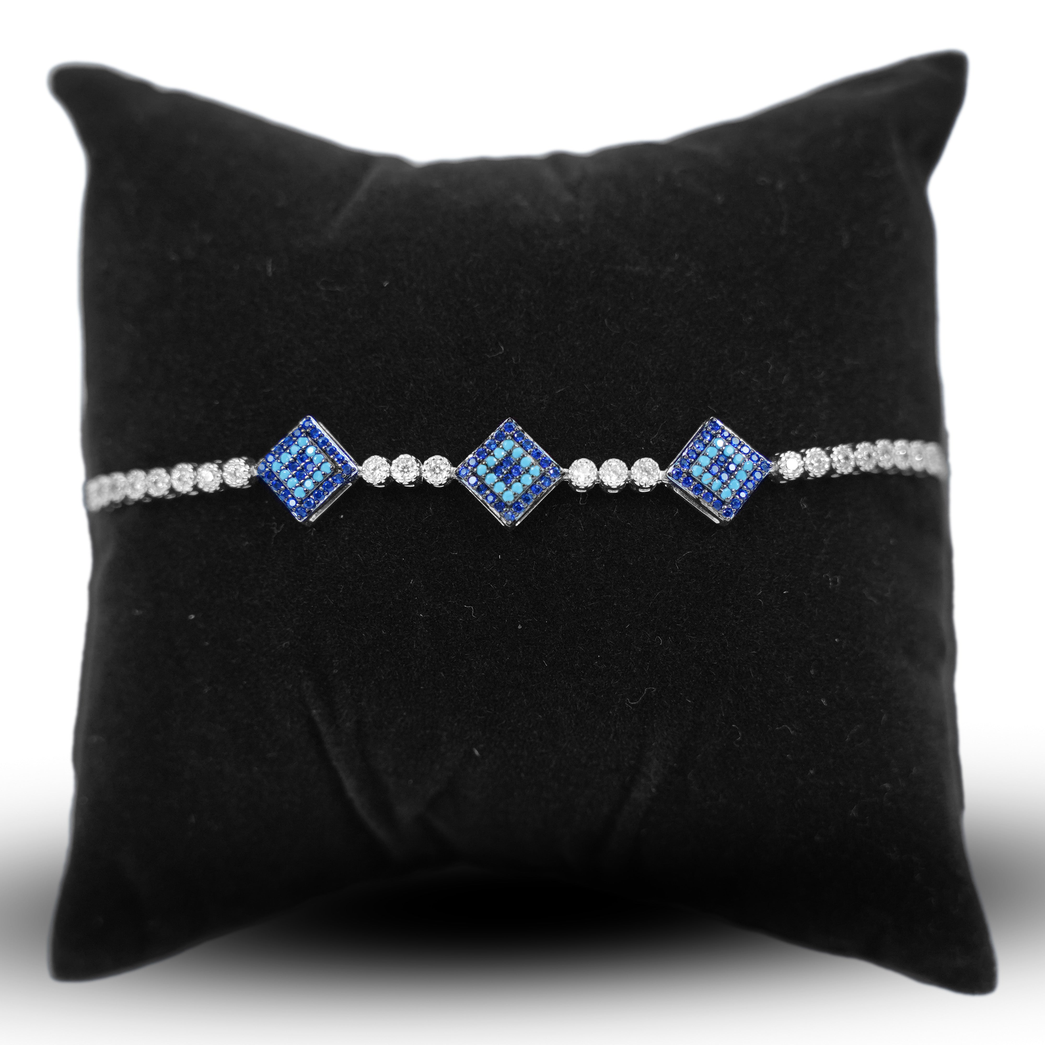 Stamped 925 Silver with Rhodium plating to prevent tarnish. Laser fitted zircon stones. Dangling end. Size adustable to make it perfectly fit. Stamped 925 Silver.