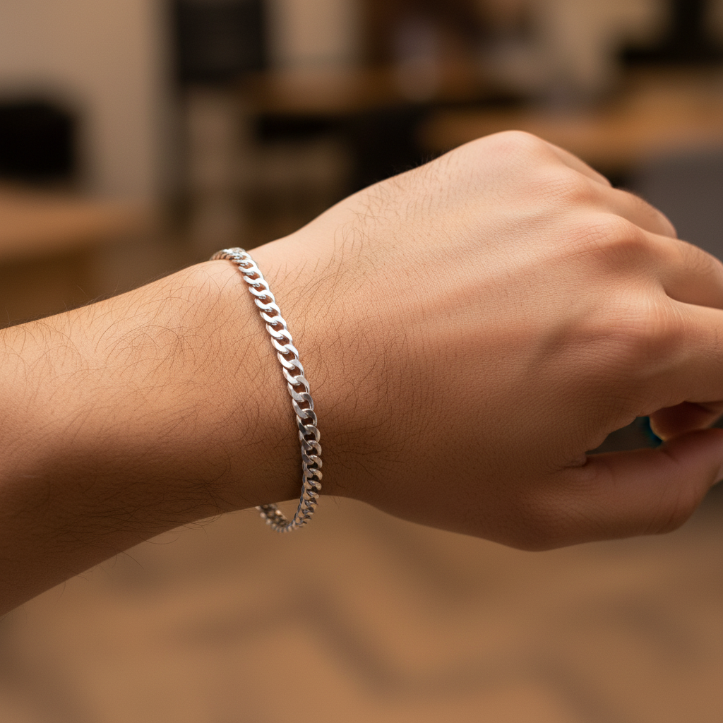 Sterling 925 Silver Bracelet. Stamped 925 and Italy on the item. 9 inches long and 9.5mm thick. Unisex. Preferably for men.