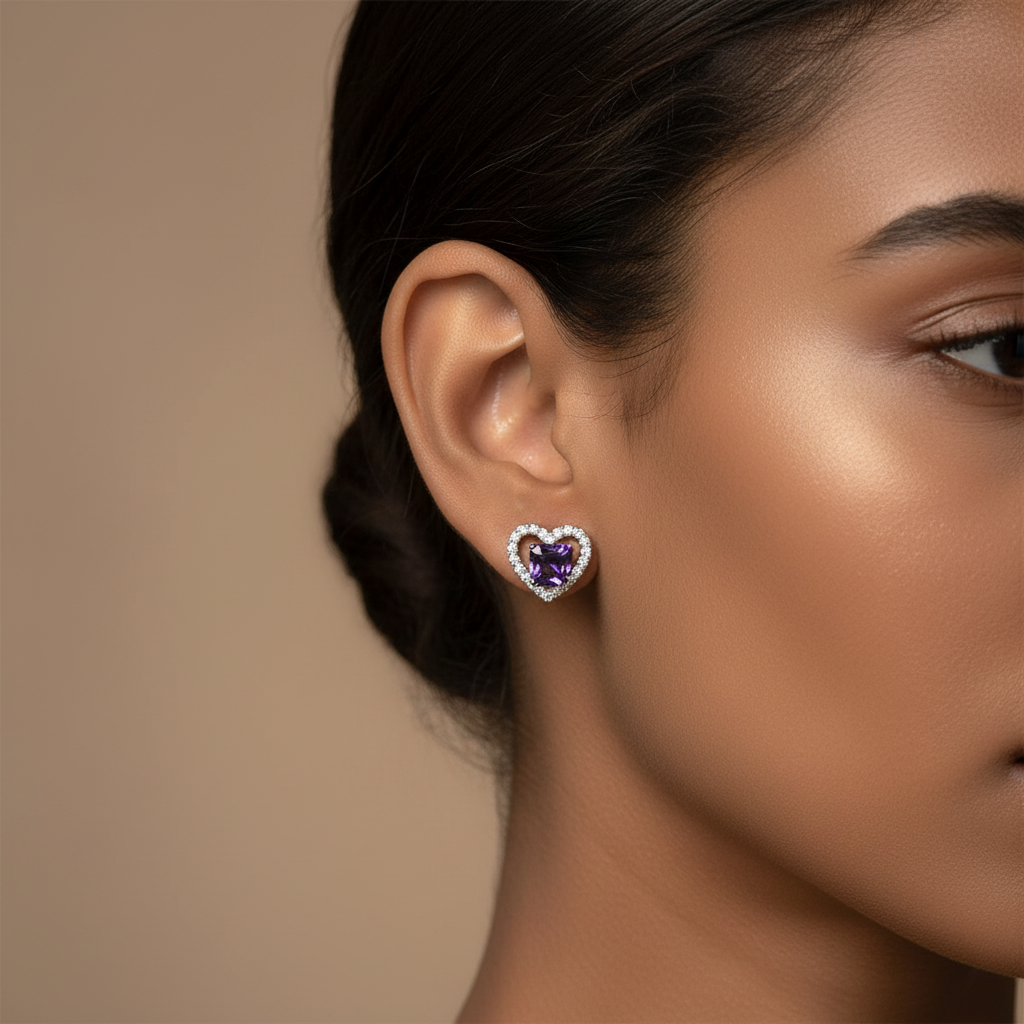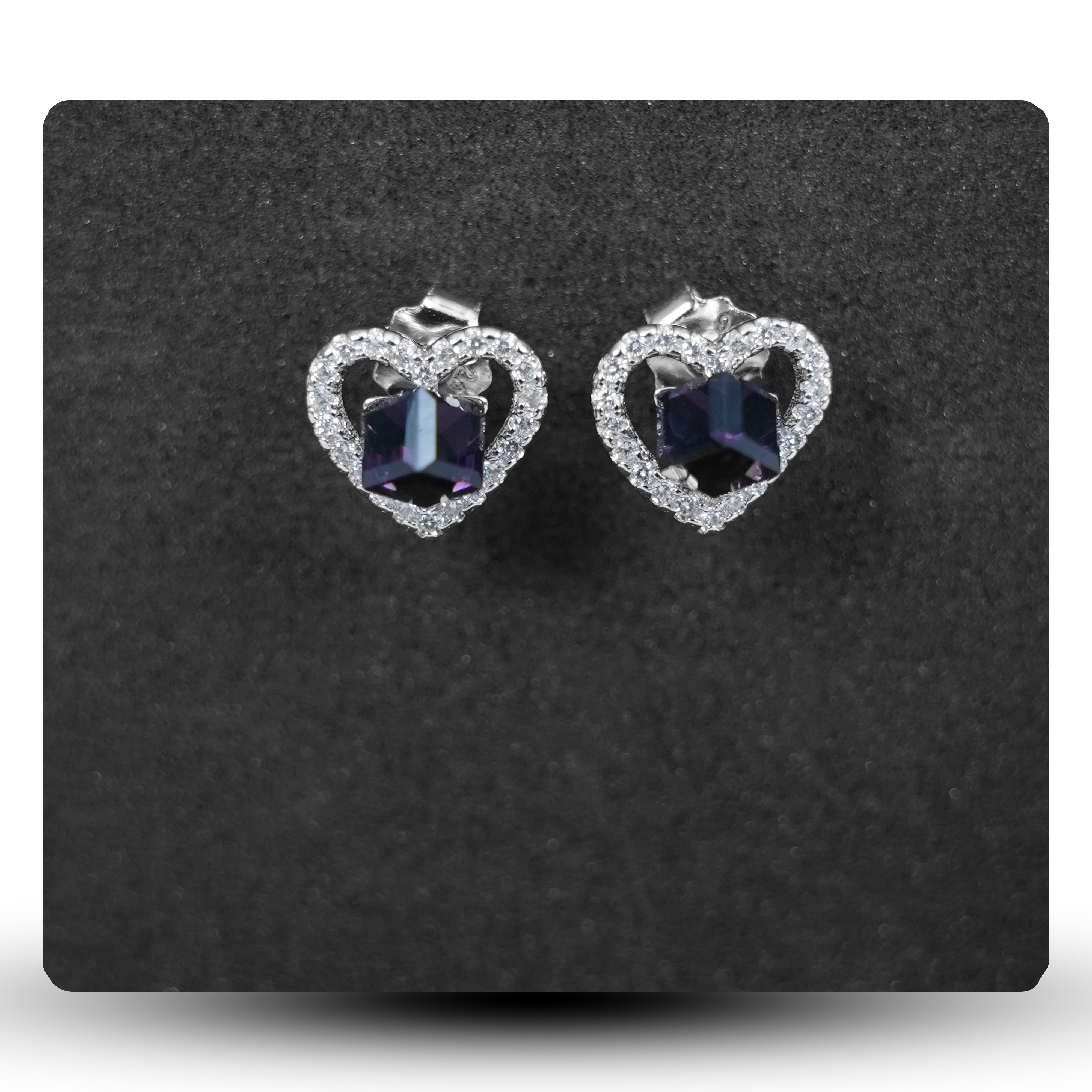 Purple Cube is graceful and gorgeous. The heart shaped studs feature a dark 3D cube zircon that makes it a unique piece.