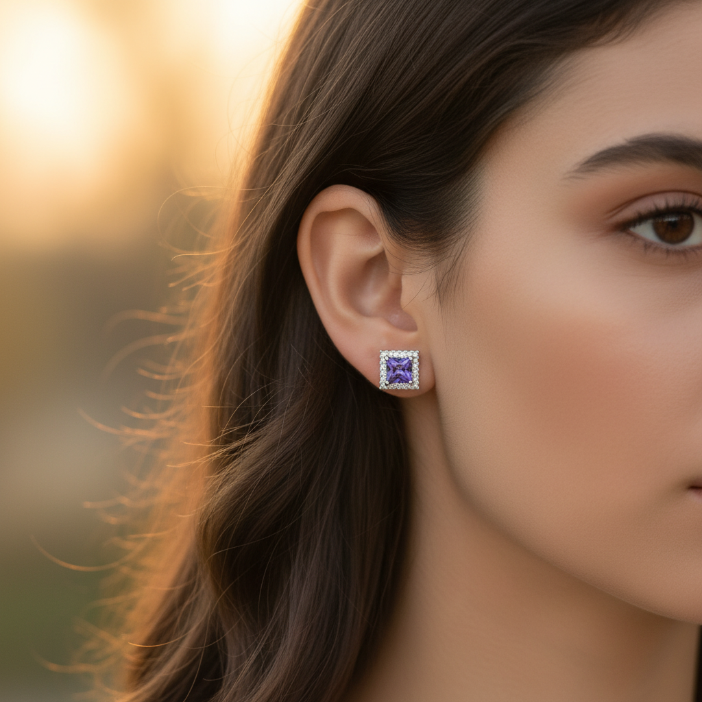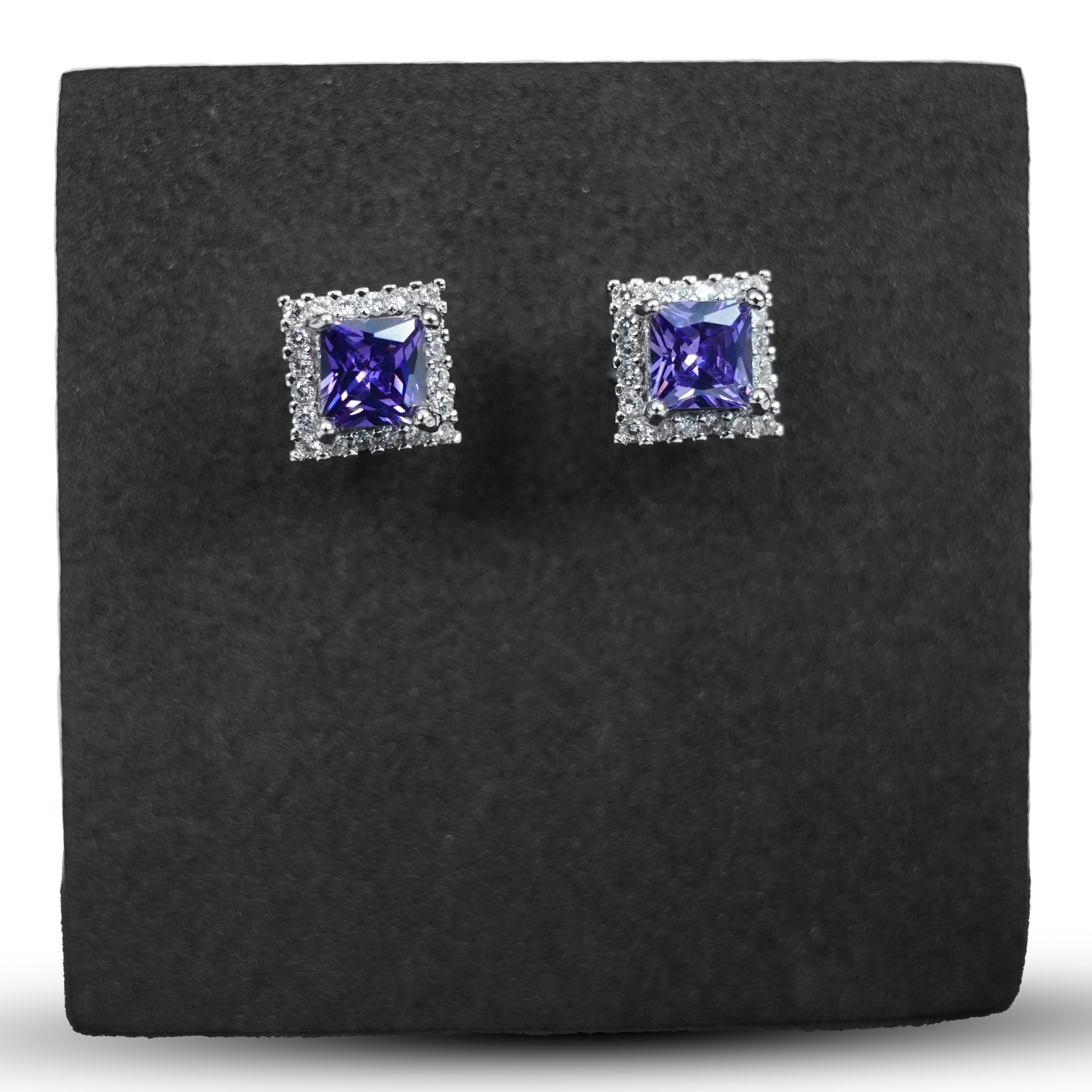 Nothing beats the glamour that purple brings to an outfit. Minimally designed in a square shape, these studs feature a center purple zircon lined with laser-fitted transparent zircons. Perfect to put on anywhere, anytime.