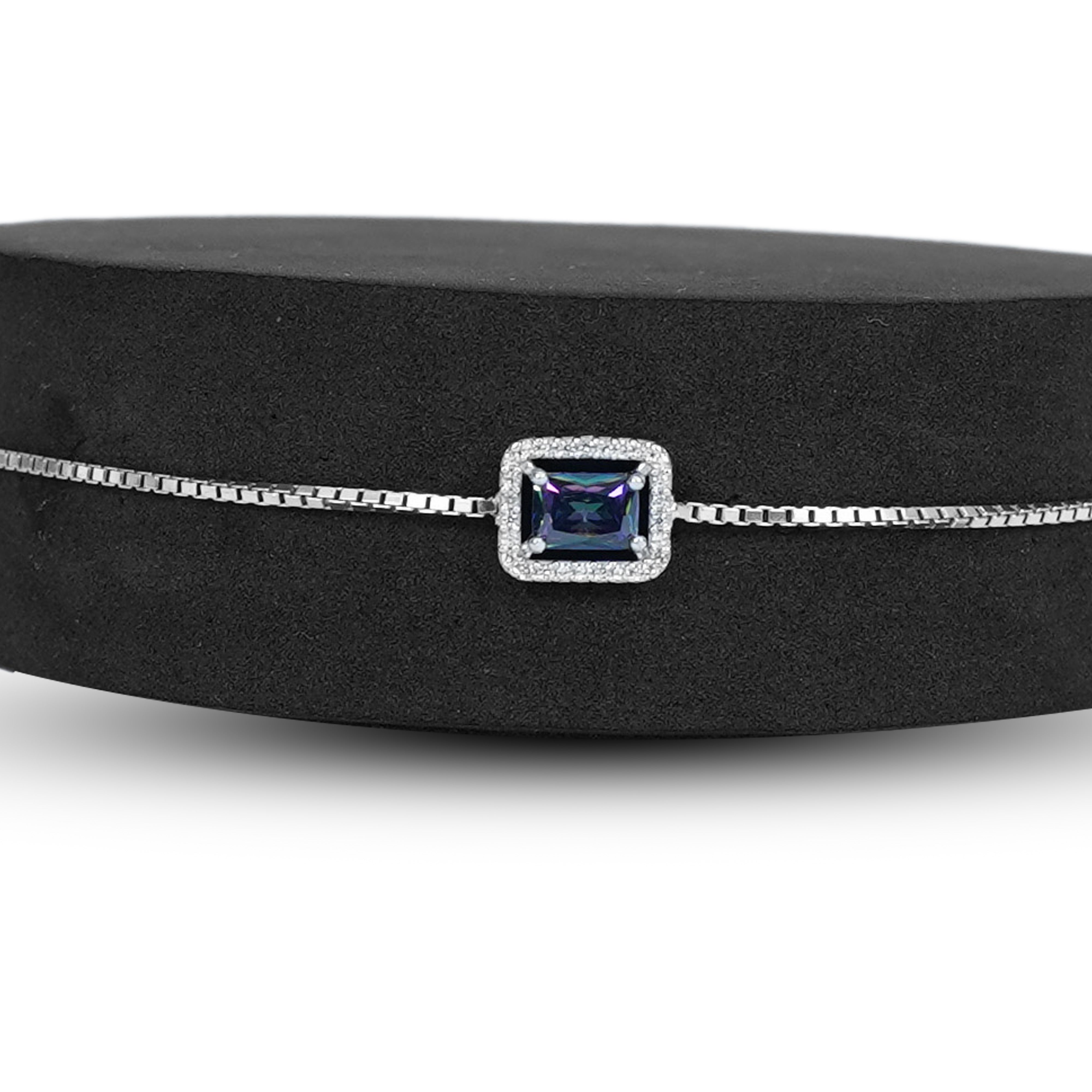 Sterling 925 Bracelet with Green Purple Zircon Stone. 8 inches + extension in length.