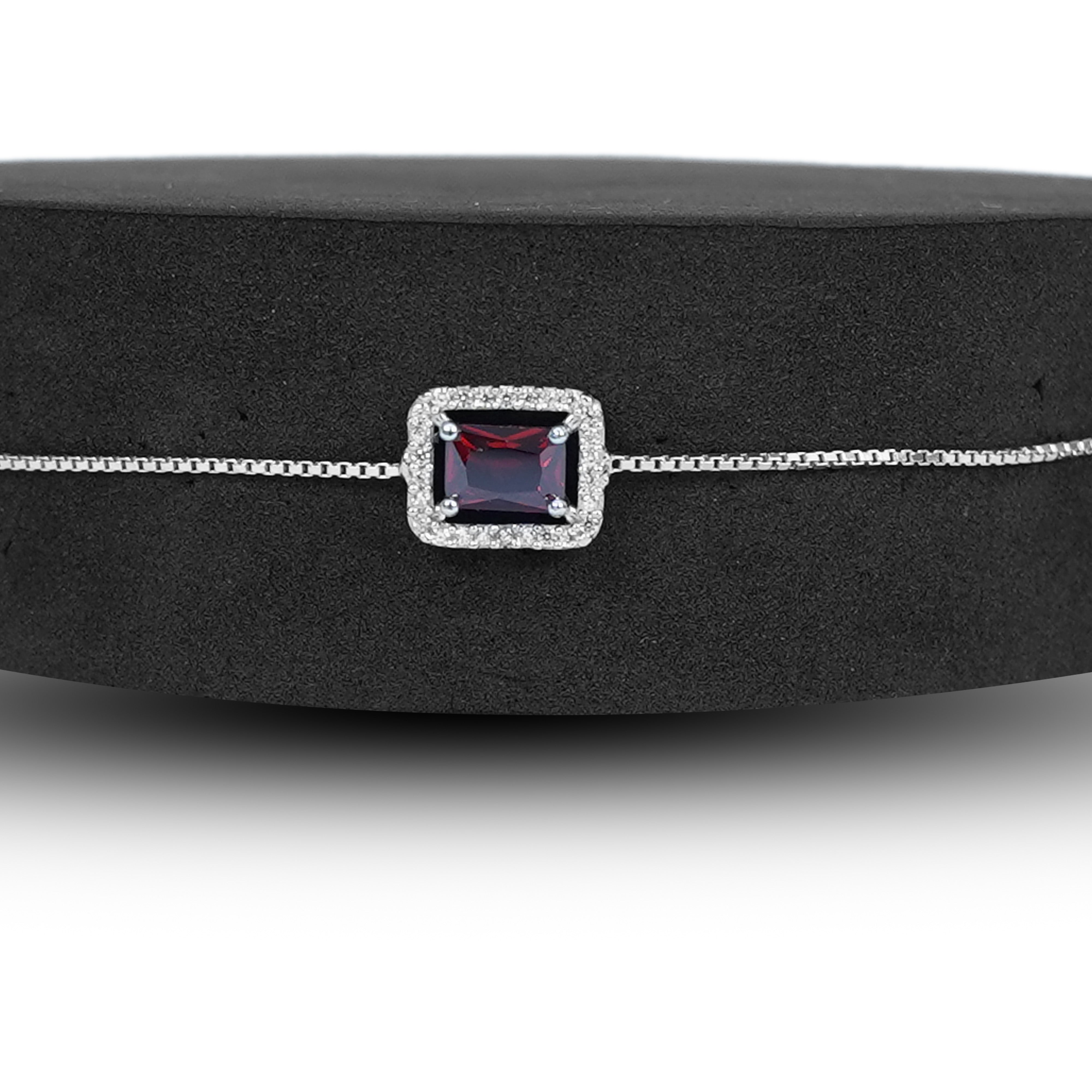 Sterling 925 Bracelet with Red Zircon Stone. 8 inches + extension in length.