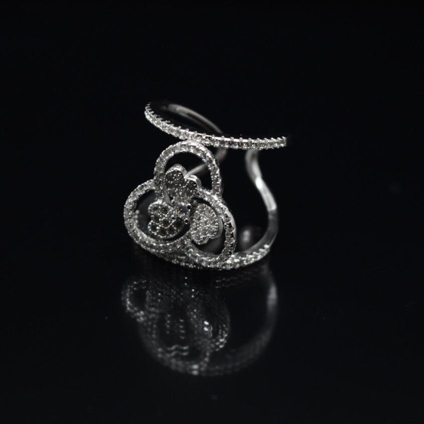 The three petal band ring is Ideal size 7 but can be adjusted from the back to make it bigger. The open band concept allows for the ring to be worn on any finger.